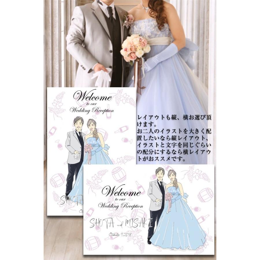 似顔絵イラスト入り ウェルカムボード A3サイズ 背景イラストなし 結婚式 前撮り写真 フォトウェディング 似顔絵 イラスト プリザーブドフラワー 衣装合わせ 結婚報告はがき 年賀状 絆を深める応援団 プレゼント ギフトのギフトモール